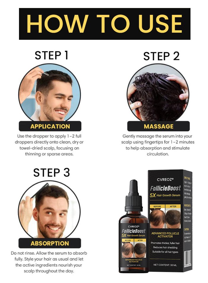 ⭐ CVREOZ® FollicleBoost 5X Hair Growth Serum 🪮