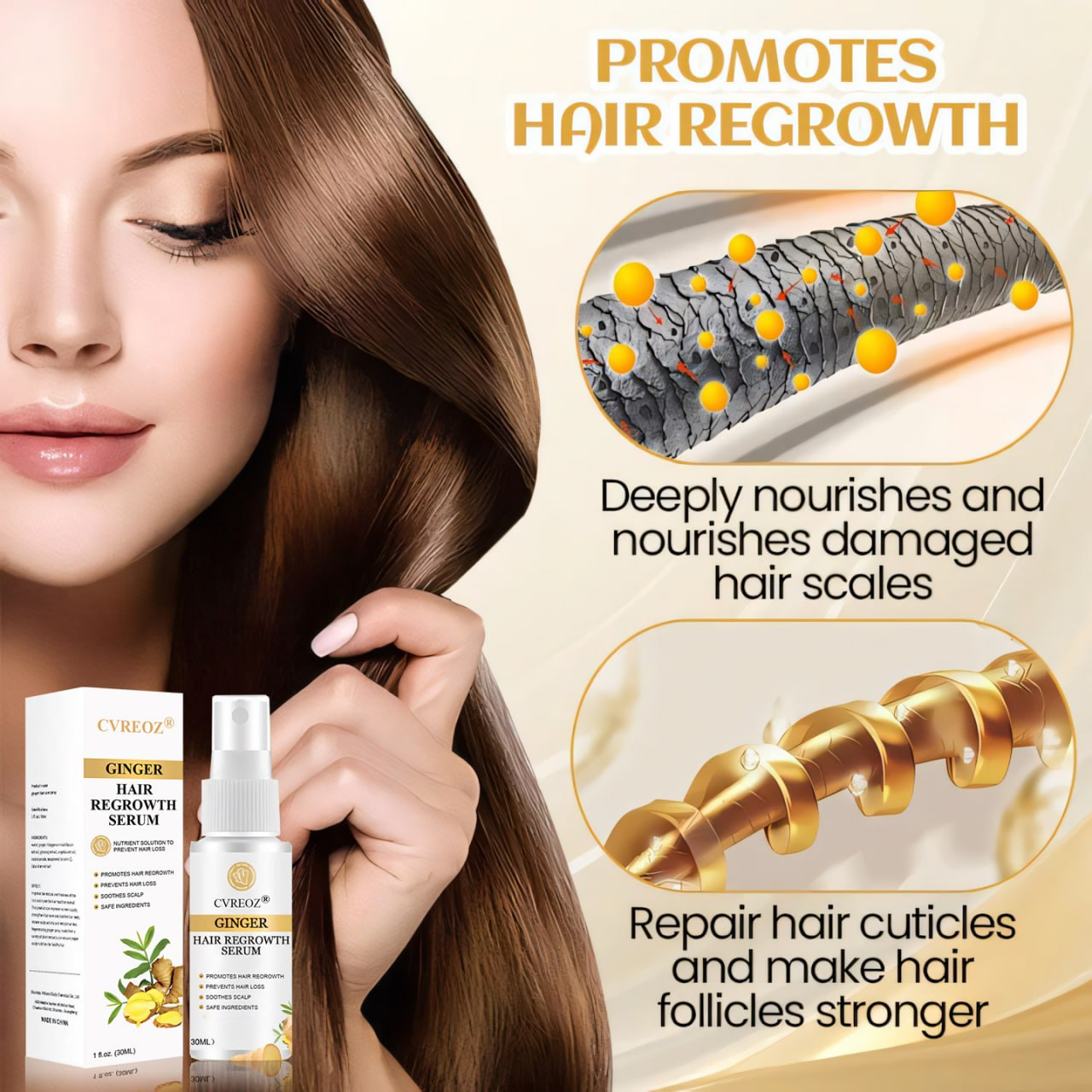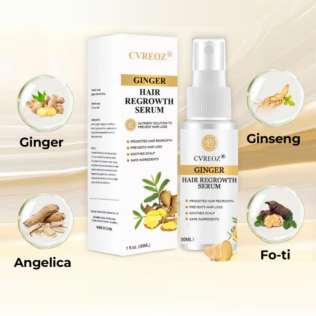 Combat Hair Loss with Cvreoz® Ginger Hair Regrowth Serum!
