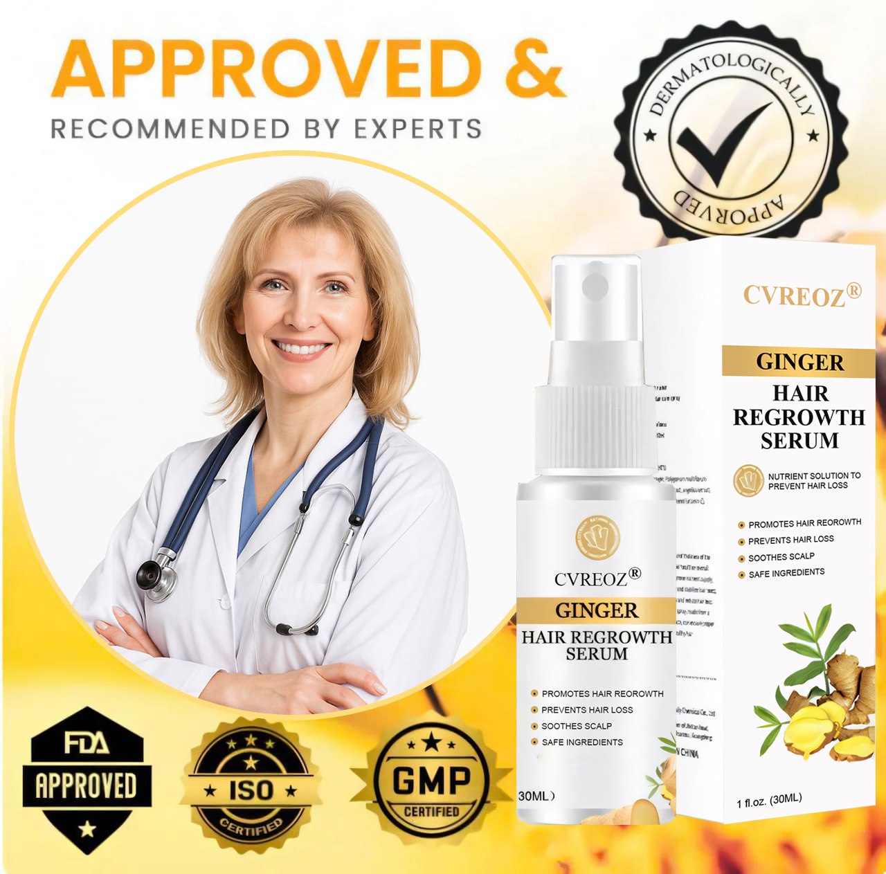 Say goodbye to Hair Loss with Cvreoz® Ginger Hair Regrowth Serum—Outstanding Performance!