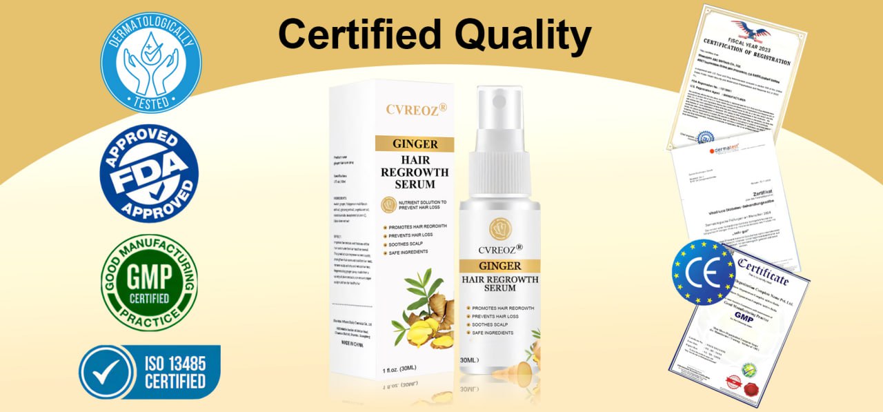"With twenty years in hair care, Cvreoz® Ginger Hair Regrowth Serum stands out for its innovative formula. Daily use shows remarkable effectiveness in combatting hair loss, backed by scientific studies.
