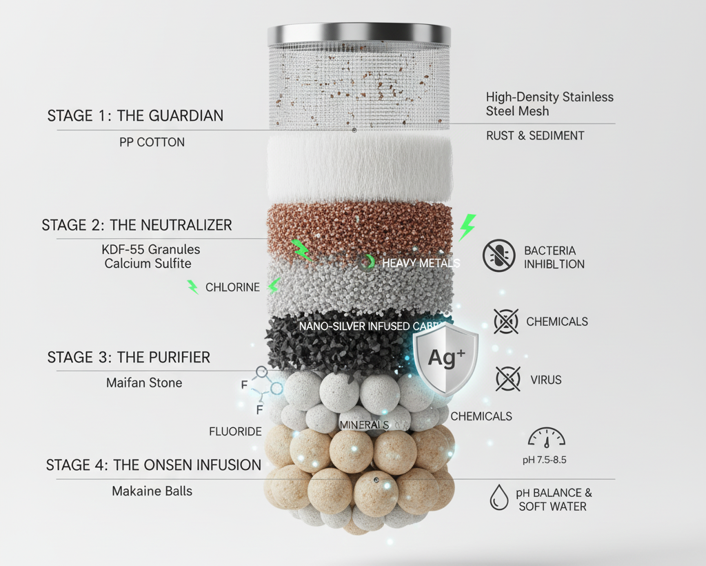 More than just a faucet, we offer an intelligent 4-stage filtration process that thoroughly eliminates Chlorine, Fluoride, Heavy Metals, and unpleasant odors.